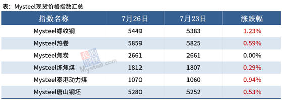 ◎ 7月19日-7月25日,Mysteel澳大利亞巴西鐵礦發(fā)運(yùn)總量2487.1萬噸,環(huán)比增加159.6萬噸;澳大利亞發(fā)貨總量1739.8萬噸,環(huán)比增加142.0萬噸;其中澳大利亞發(fā)往中國量1485.9萬噸,環(huán)比增加96.7萬噸;巴西發(fā)貨總量747.3萬噸,環(huán)比增加17.6萬噸。詳情>>